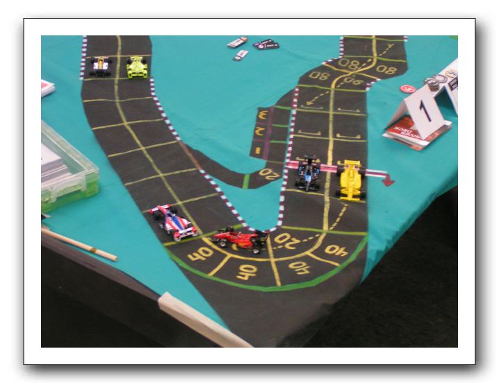 A close up of the cars at the La Source hairpin turn on the Spa track.
